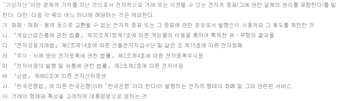 동 법에서 가상자산이 무엇인지 정의를 내렸는데요, 다음과 같습니다.